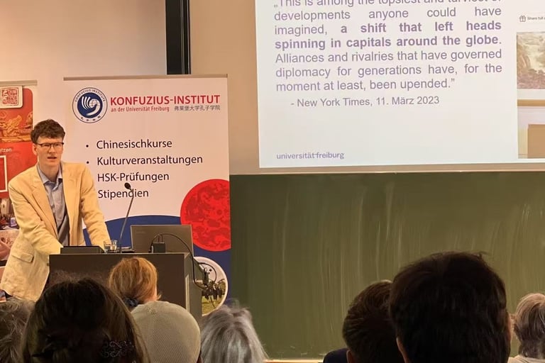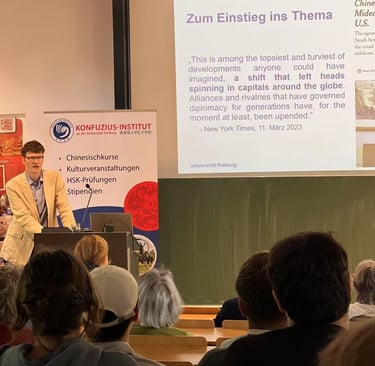 "Friedensmacht China? Pekings neue Rolle in internationalen Konflikten" [Chinas as a peacemaker? Beijings new role in international conflicts], lecture at the University of Freiburg, 9 July 2025.